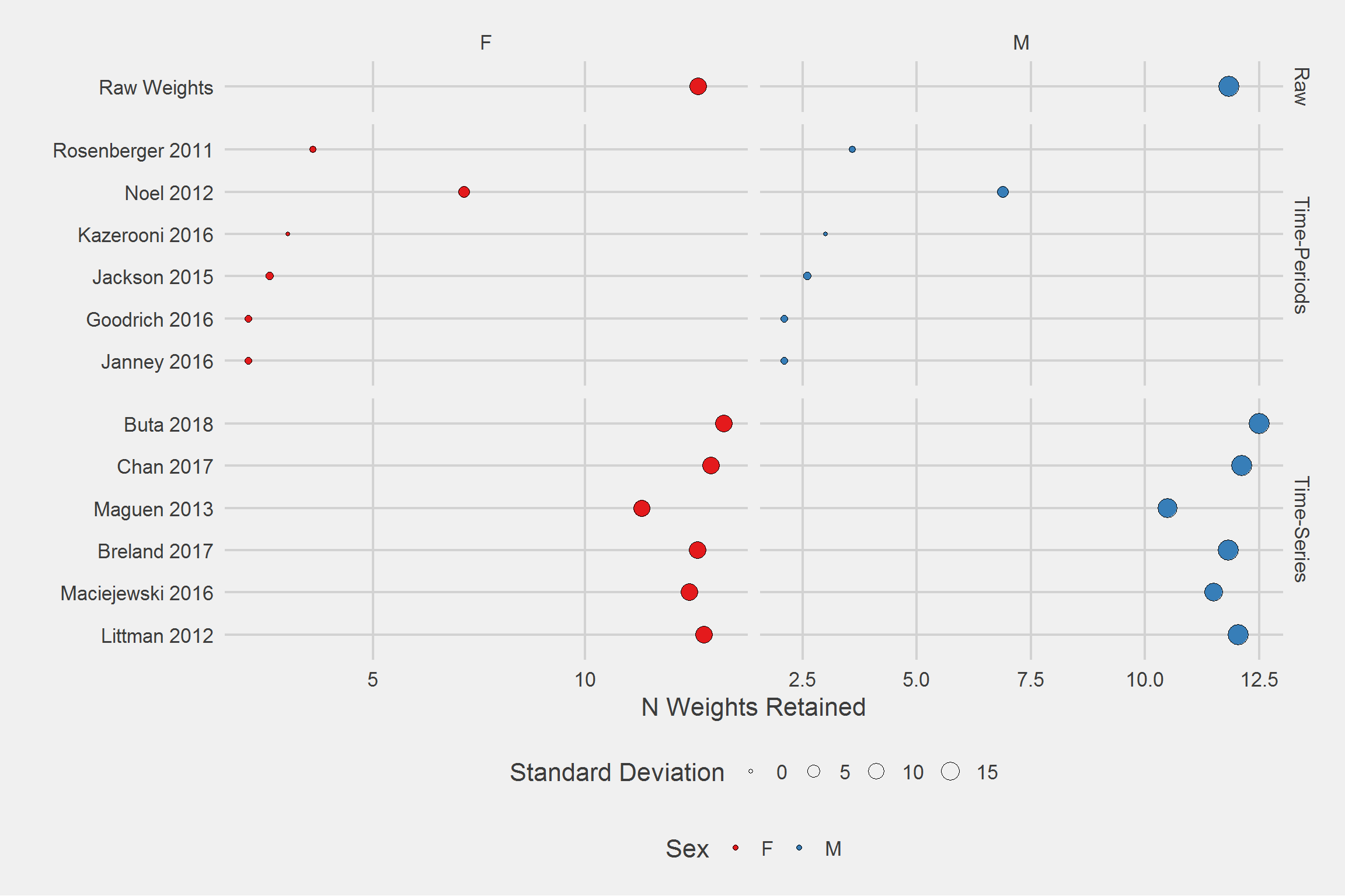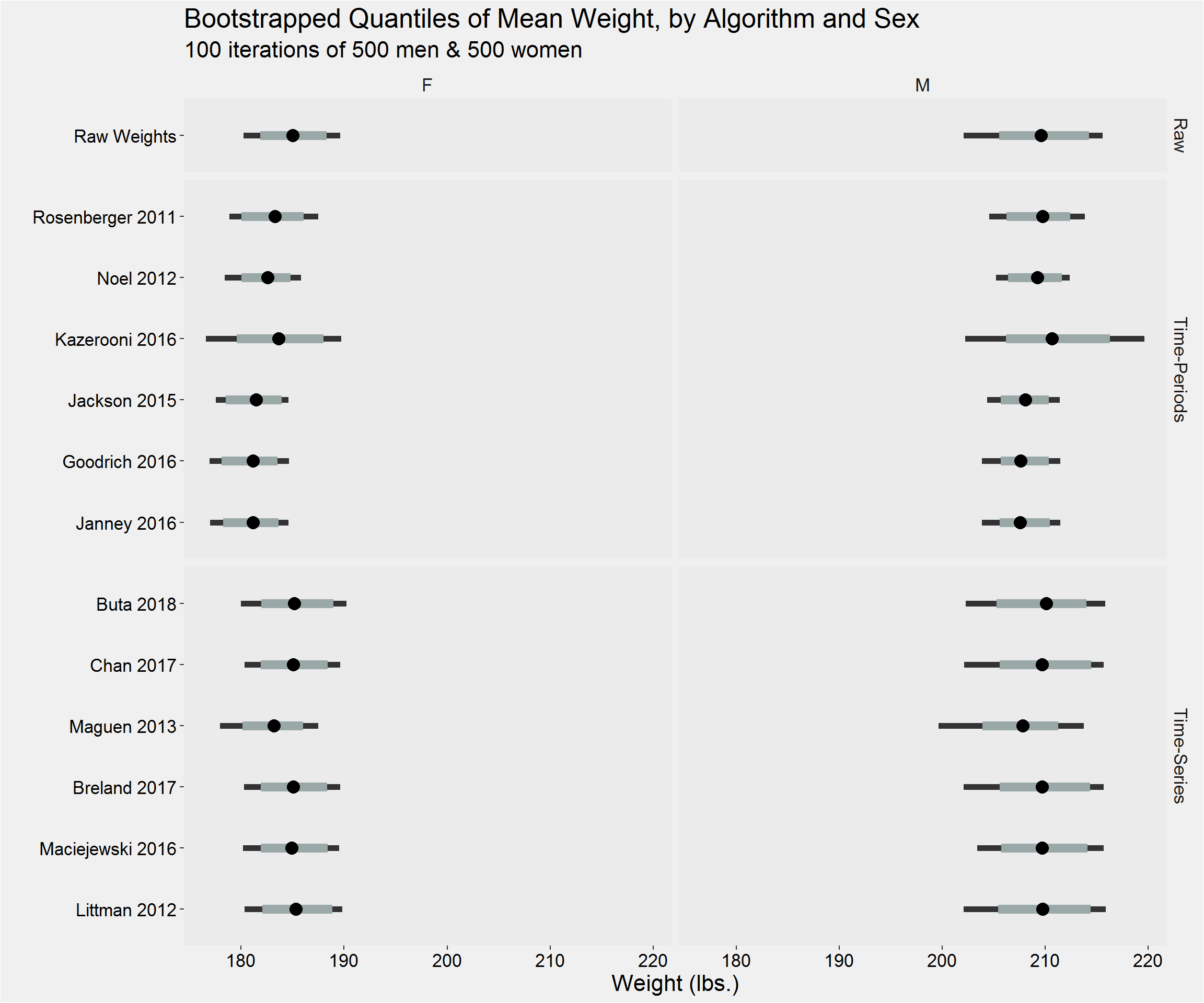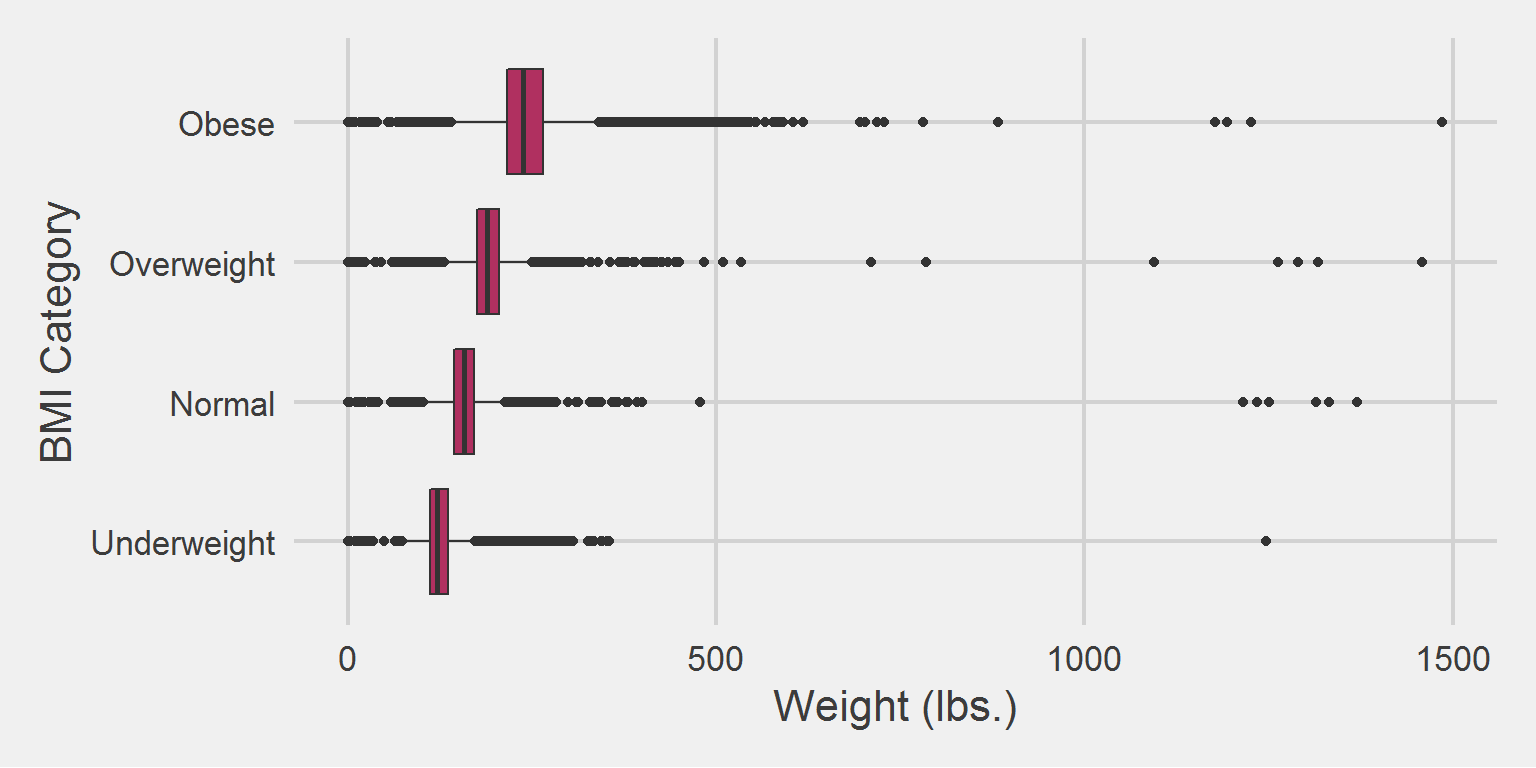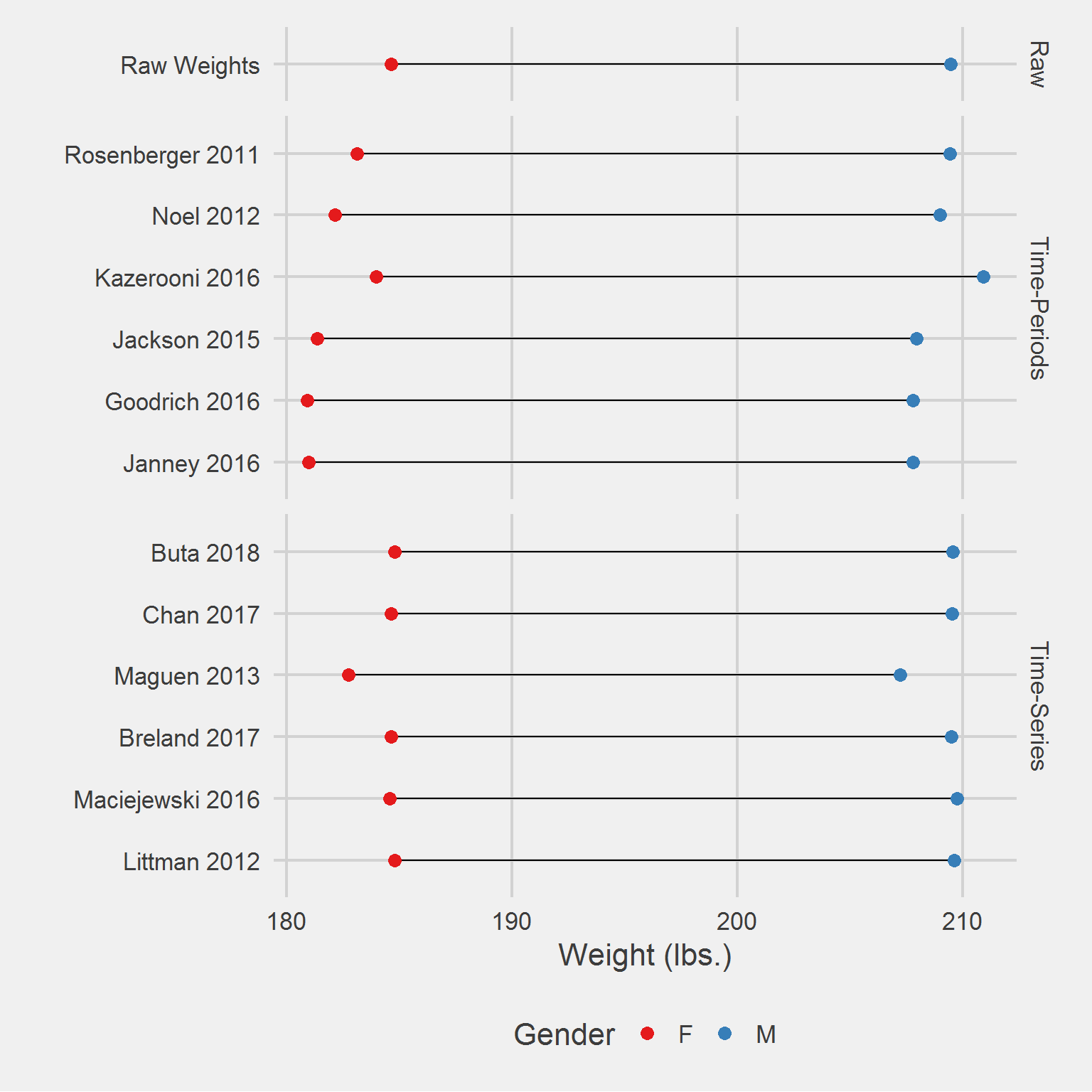 | Raw Weights | Obese | 21.49 | 17.19 | 8.20 | 14.00 | 17.60 | 23.30 | 296.10 |