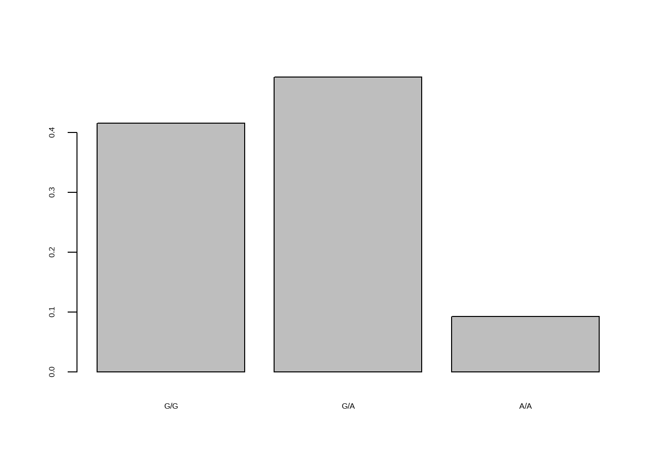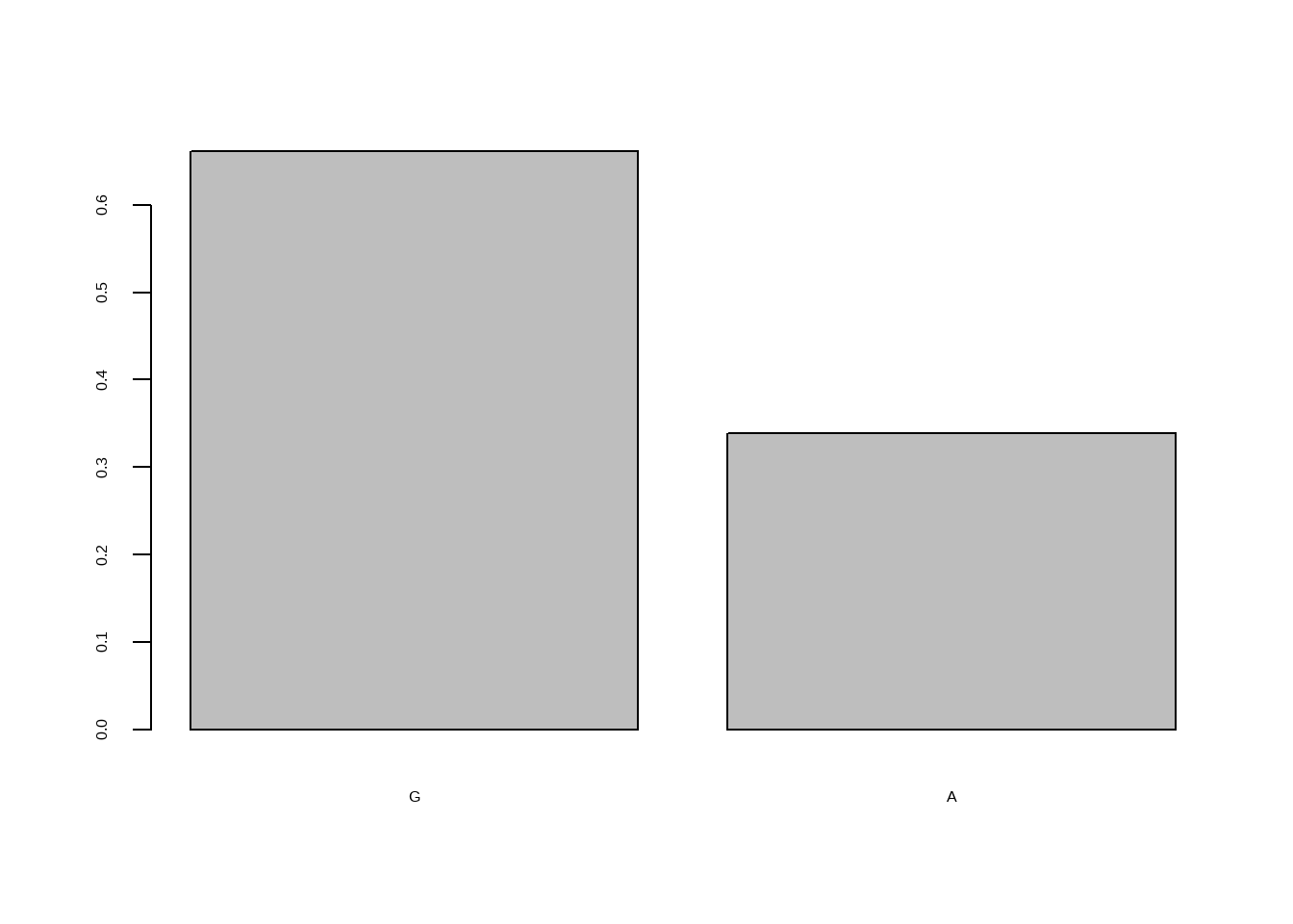 ## [1] "G/G" "G/G" "G/G" "A/A" "G/A" "G/A" "G/A" "G/A" "G/A" "G/G" "G/A" "G/G"