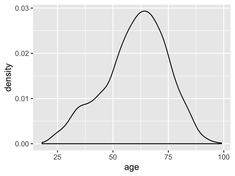 The count() function describes the education variable. Note that the table() function is a good way to look at categorical and ordinal data as well, but using count() allows us to see the NAs and is consistent with tidyverse syntax.