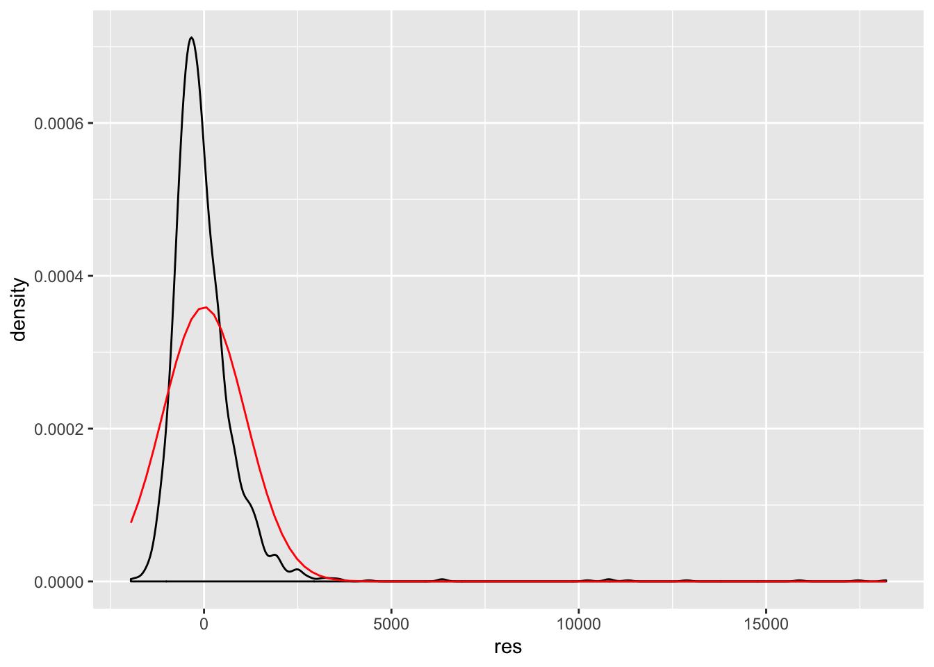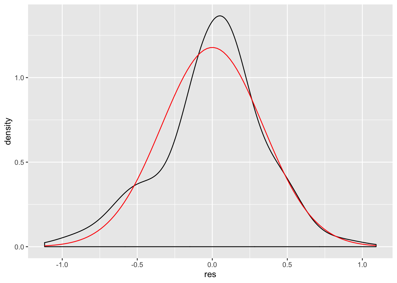 stat_function(fun = dnorm, args = list(mean = mean(d$res), sd = sd(d$res)),