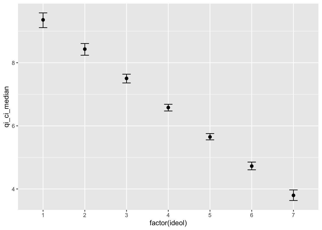 ggplot(lm1.out, aes(x=factor(ideol), y = qi_ci_median)) +