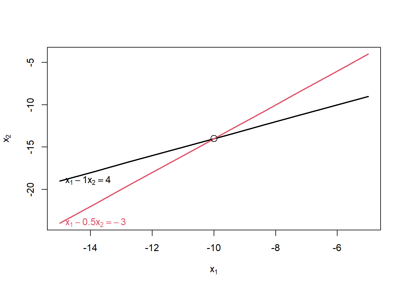 showEqn(A,b)## 1*x1 - 1*x2 = 4