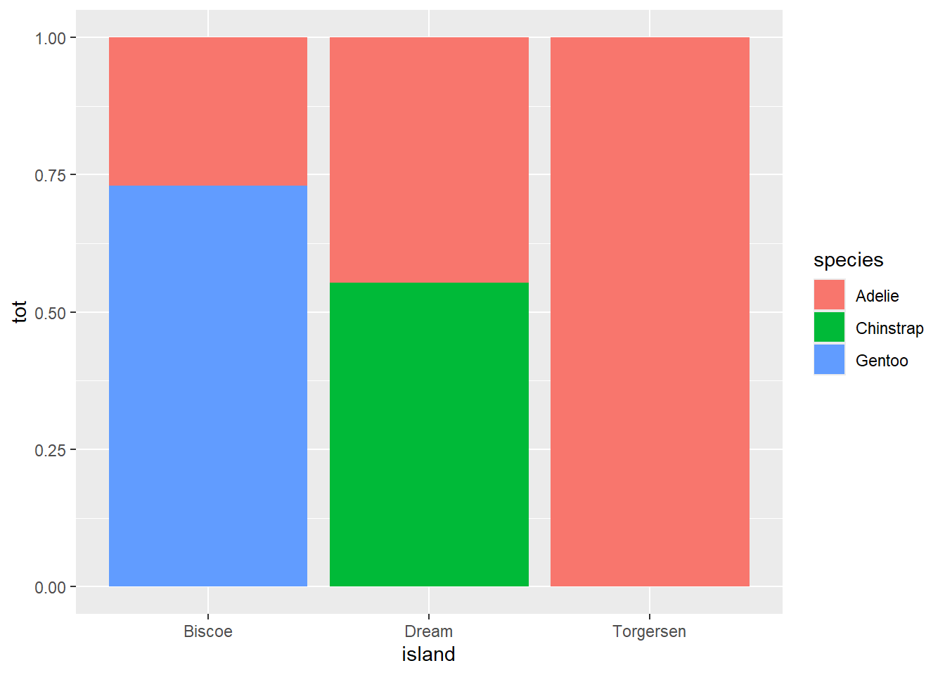 geom_col(position = "fill")## `summarise()` has grouped output by 'species'. You