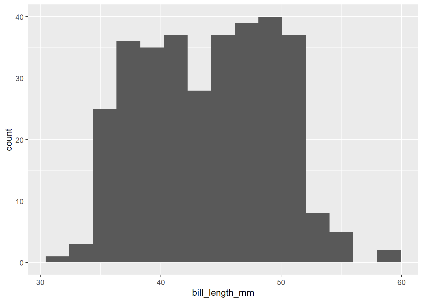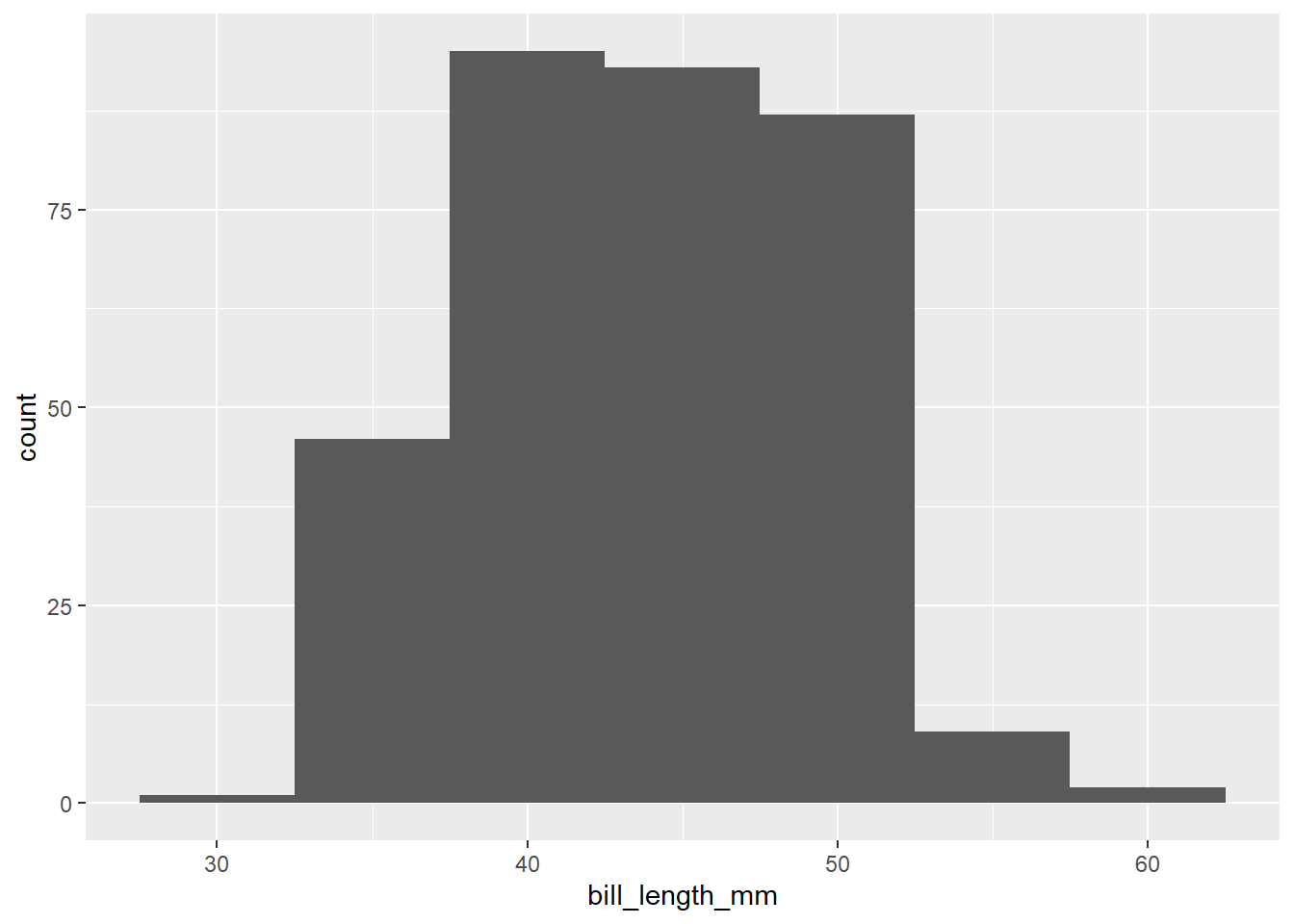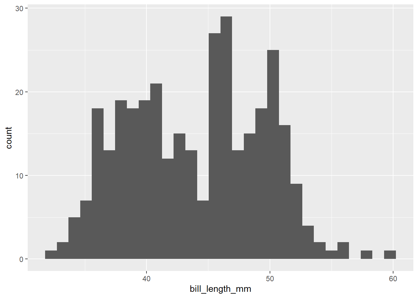 Por ejemplo, para ver como se distribuyen los largo de pico de los pinguinos en Palmer: