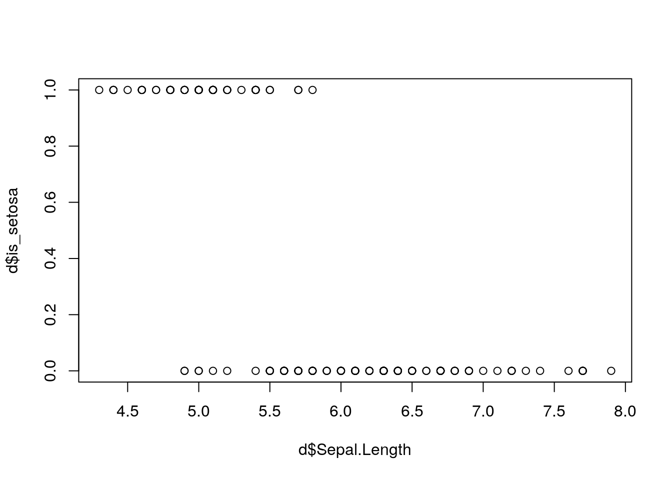 The best known of the GLM class of models is the logistic regression that deals with Binomial, or more precisely, Bernoulli-distributed data. The link function in the logistic regression is the logit function \[\begin{align} g(t)=log\left( \frac{t}{(1-t)} \right) \tag{8.2} \end{align}\] implying that under the logistic model assumptions \[\begin{align} y|x \sim Binom \left( 1, p=\frac{e^{x'\beta}}{1+e^{x'\beta}} \right). \tag{8.3} \end{align}\]