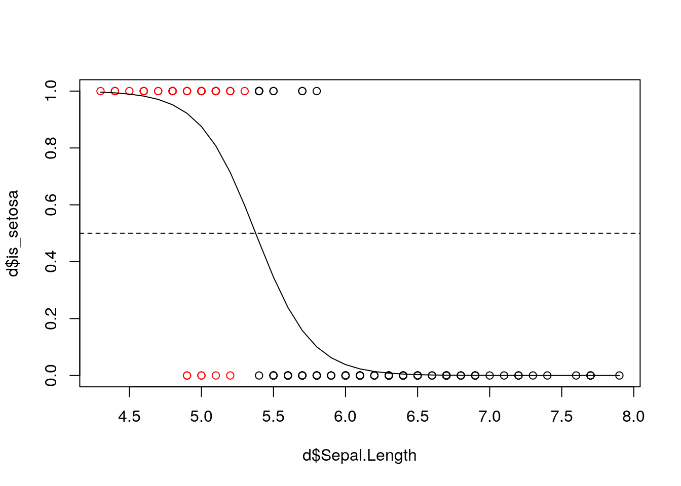 summaryfunction is content aware. It gives a different output forglmclass objects than for other objects, such as thelmwe saw in Chapter 7. In fact, whatsummarydoes is merely callsummary.glm.As usual, we get the coefficients table, but recall that they are to be interpreted as (log) odd-ratios, i.e., in “link scale”. To return to probabilities (“response scale”), we will need to undo the logistic transformation.