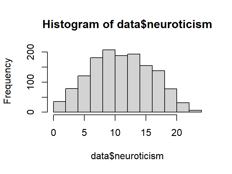 ## $ extraversion : num [1:1421] 13 14 16 20 19 15 10 11 16 7 ...