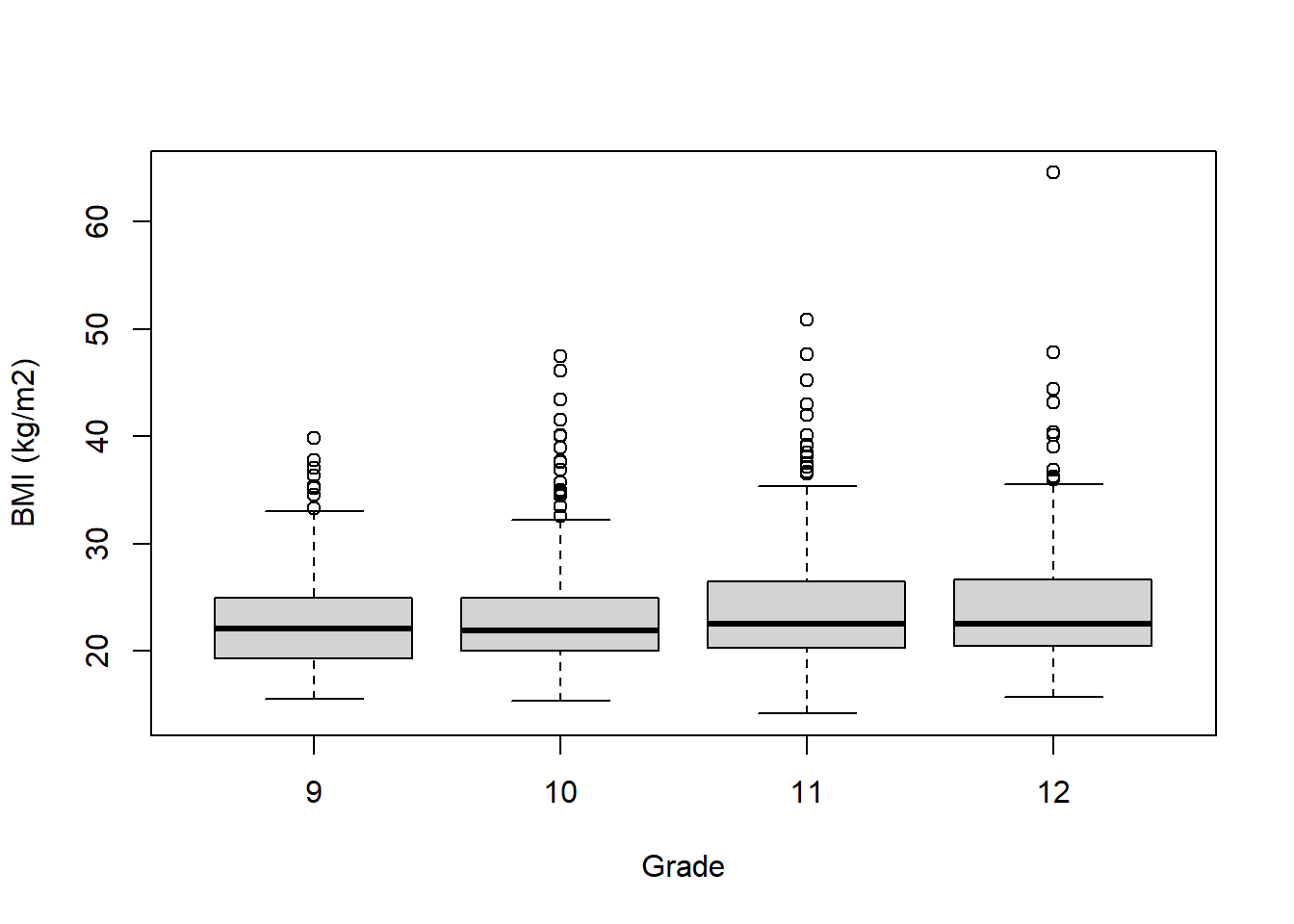 labs(y = "Body Mass Index (kg/m2)", x = "Grade")