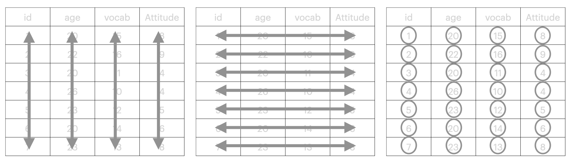 id,age,vocab, andattitude); - Each observation is in its own row (e.g.,
