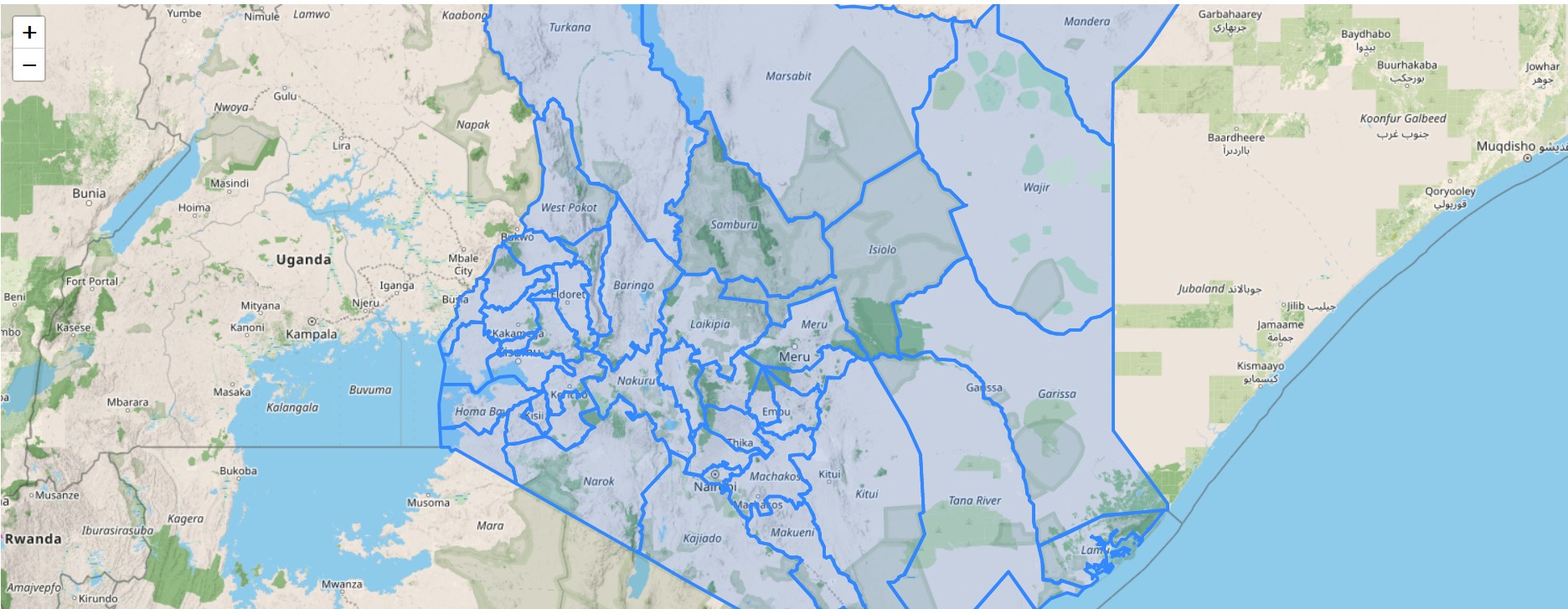Now to the big part –the GeoJSON files. We would like to mention it was quite a hustle to set up the GeoJSON file to be in a format accessible by JavaScript’s Fetch API. Only when we converted the GeoJSON to .json were we able to successfully view it using fetch. The raw json file for our Kenyan counties which we shall use in creating a choropleth map is available from here or here.
