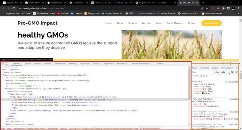You can view the style of a particular HTML element using the styles tab found in Element tab of the inspect console. To get to the Inspect tab of your browser, right click the webpage and select Inspect from the list of options provided.