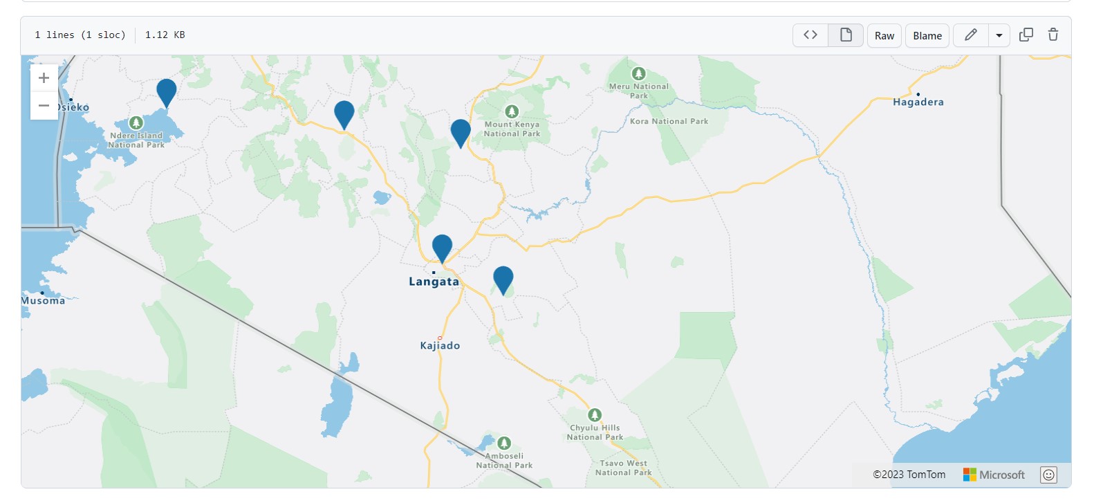 Just a small note before going on. When the GeoJSON file has the population values enclosed in strings "", they are automatically rendered on a map on the Github server as shown below.