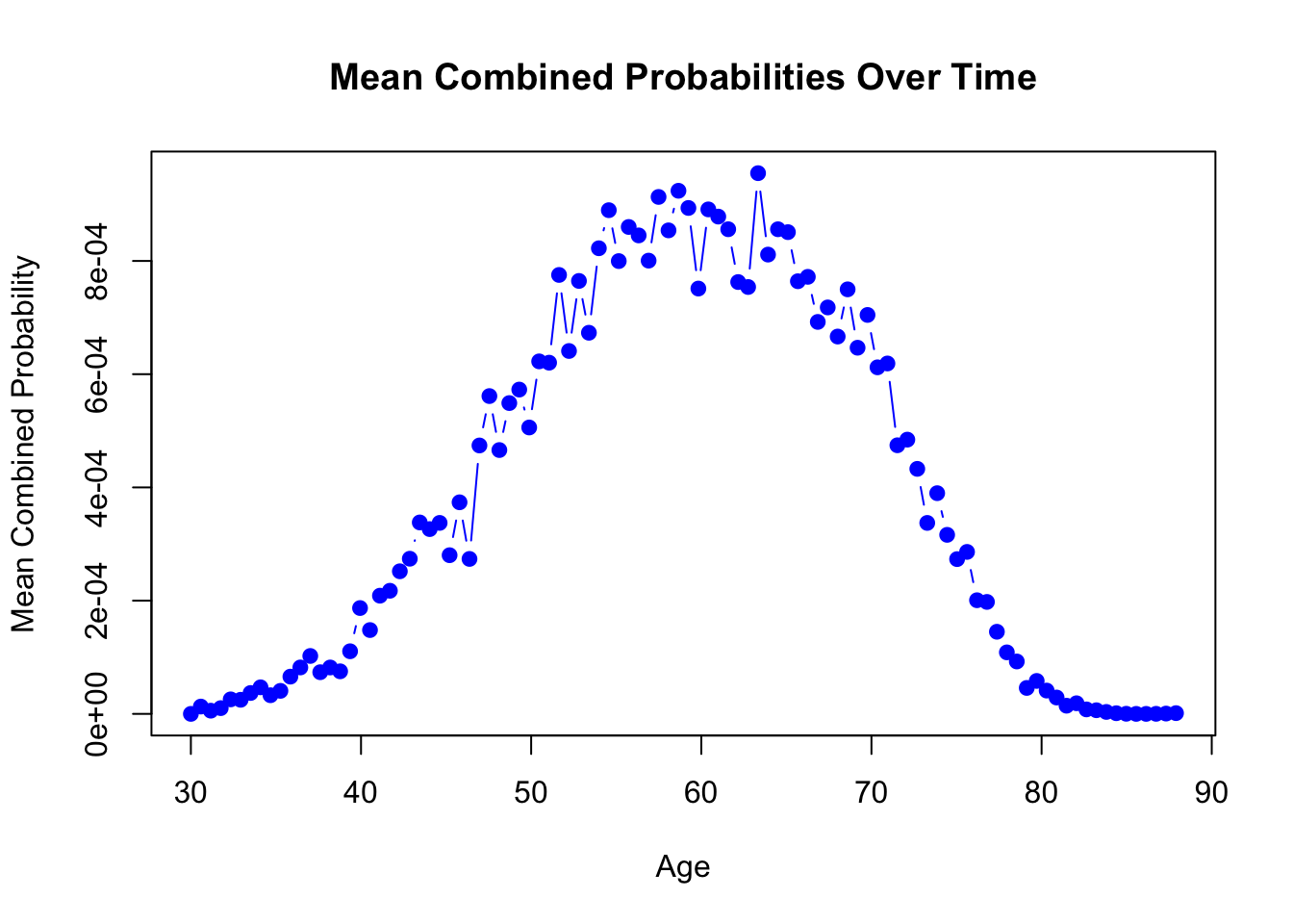 main = "Mean Combined Probabilities Over Time", xlab = "Age", ylab = "Mean Combined Probability")