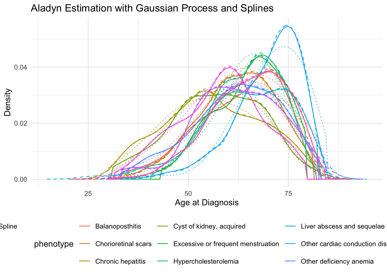 labs(title = "Aladyn Estimation with Gaussian Process and Splines",