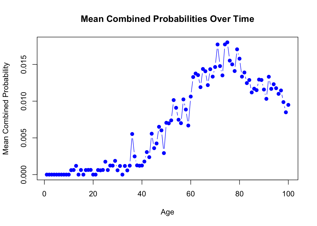 main = "Mean Combined Probabilities Over Time", xlab = "Age", ylab = "Mean Combined Probability")