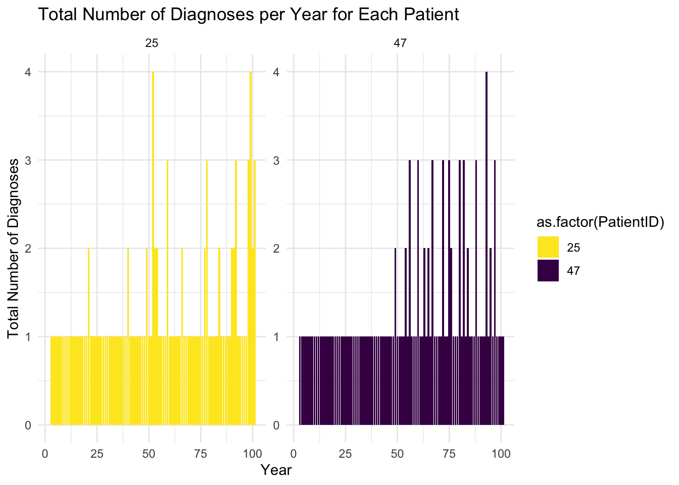 labs(title = "Total Number of Diagnoses per Year for Each Patient",