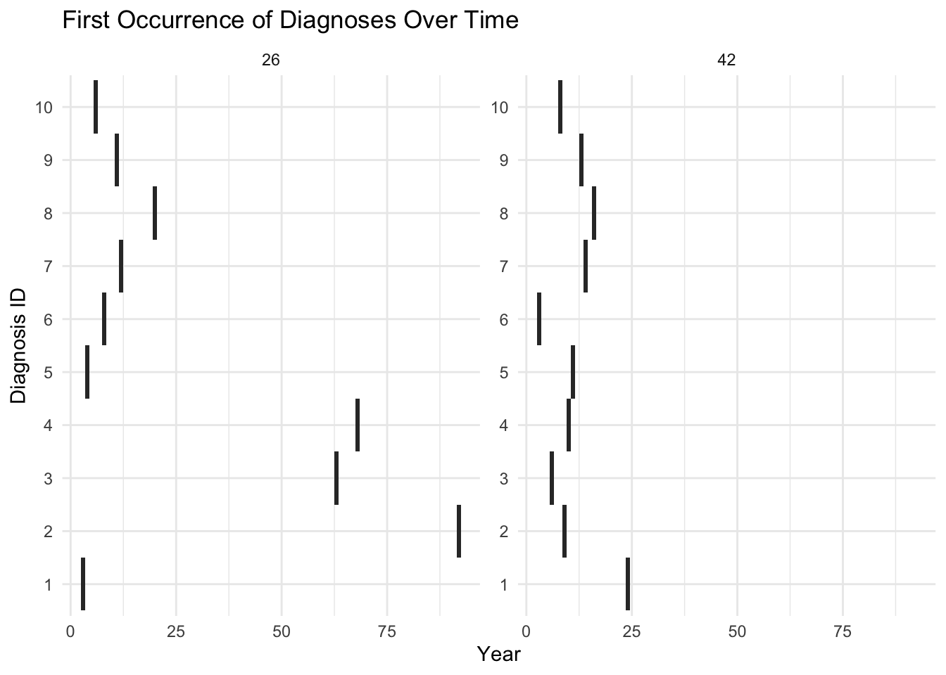 labs(title = "First Occurrence of Diagnoses Over Time",