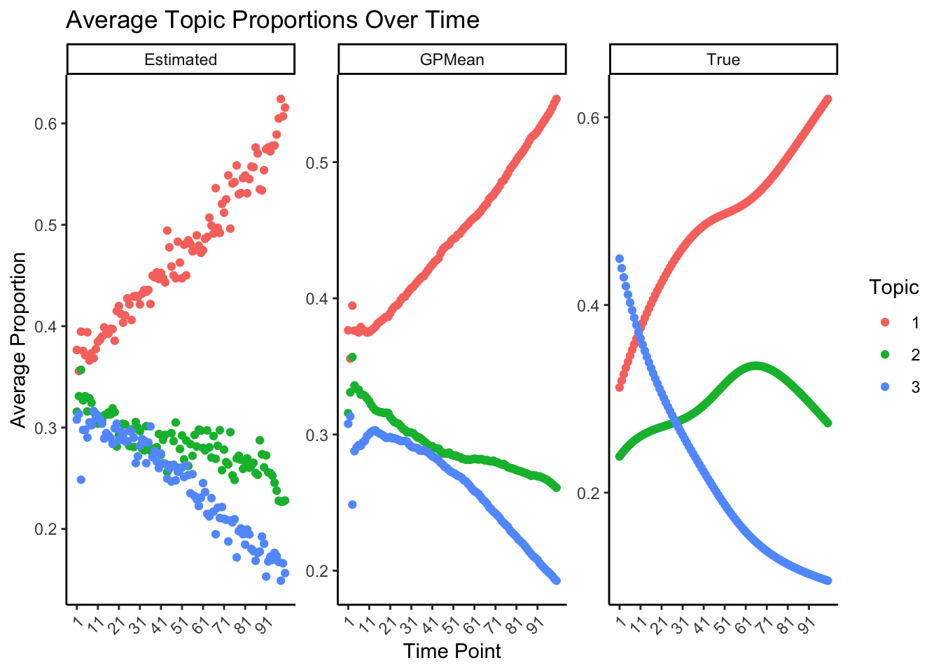 labs(title = "Average Topic Proportions Over Time", x = "Time Point", y = "Average Proportion", fill = "Topic",col="Topic") +