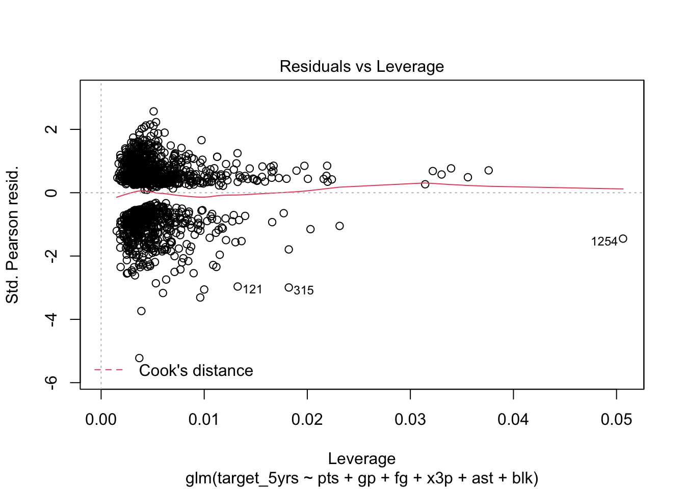 model2 <- glm(target_5yrs ~ pts + gp + fg + x3p + ast + blk,