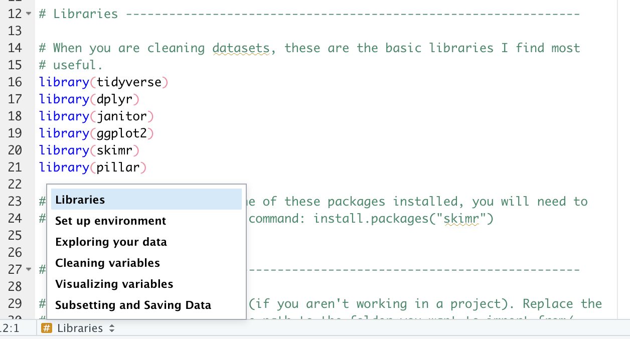 ### Section Three ############################# You can collapse and expand code sections or use a drop down menu to jump to a code section. Trust me when I say cleaning scripts can get long, and these section headers can be a huge time-saver.