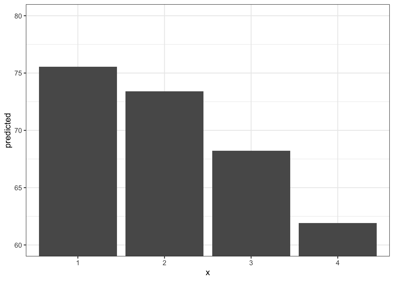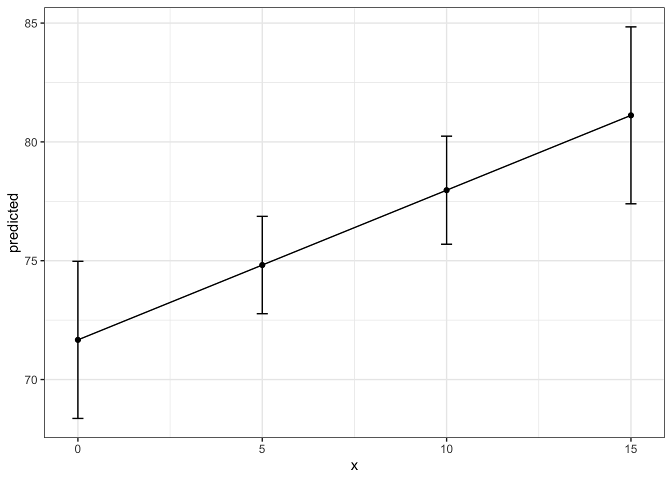 We can do a lot with ggpredict() and the margins it produces. For example, Let’s say we want to know…