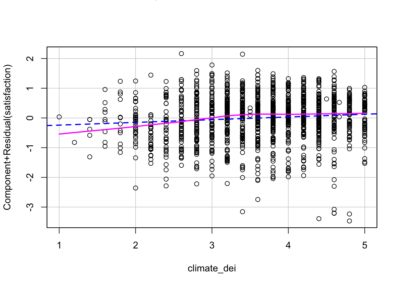 fit2 <- lm(satisfaction ~ climate_gen + climate_dei + instcom + I(instcom^2) +