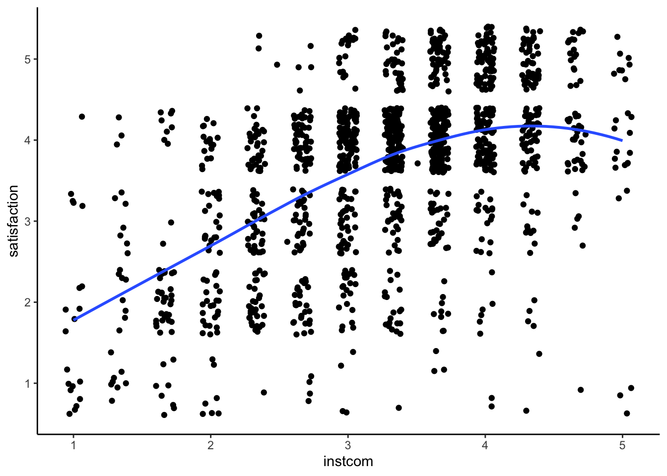 ggplot(mydata, aes(x = instcom, y = satisfaction)) +