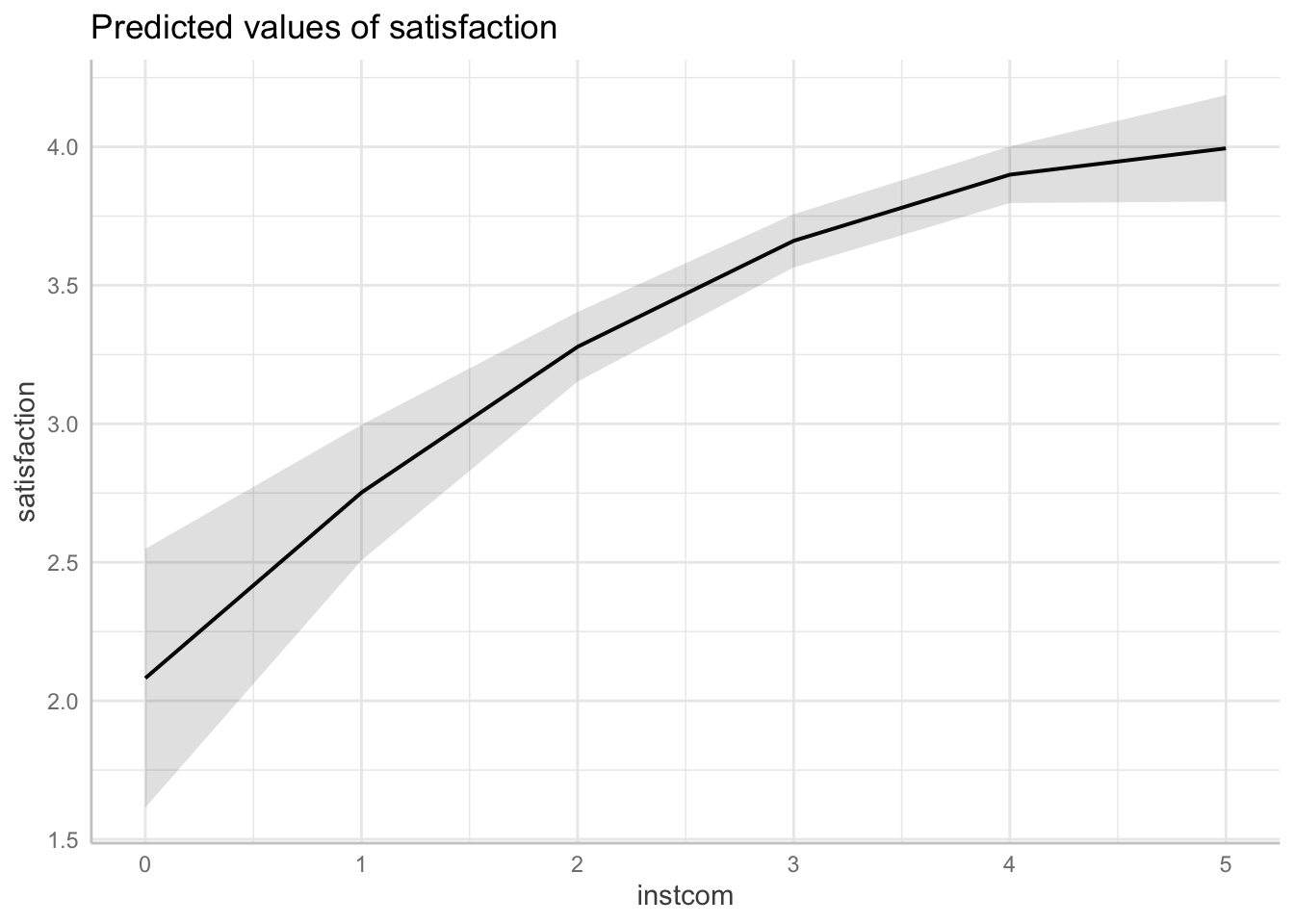 ggpredict(fit2, terms = "instcom[0:5 by = 1]")| x | predicted | std.error | conf.low | conf.high | group |