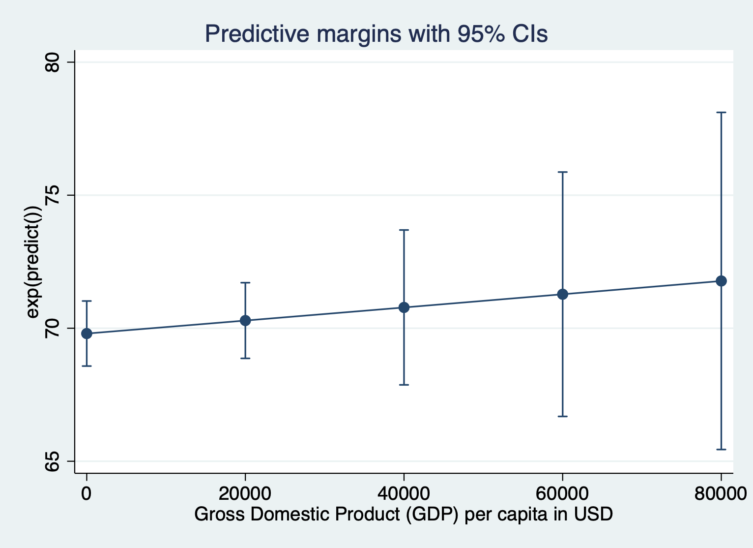 quietly margins, expression(exp(predict())) at(gdp =(0(20000)87700))
