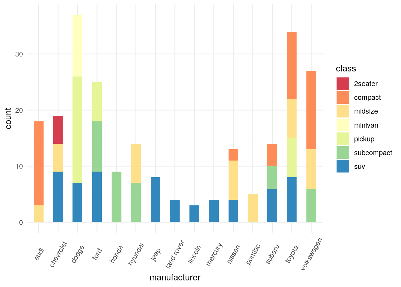 ## manufacturer model displ year cyl trans drv cty hwy fl class