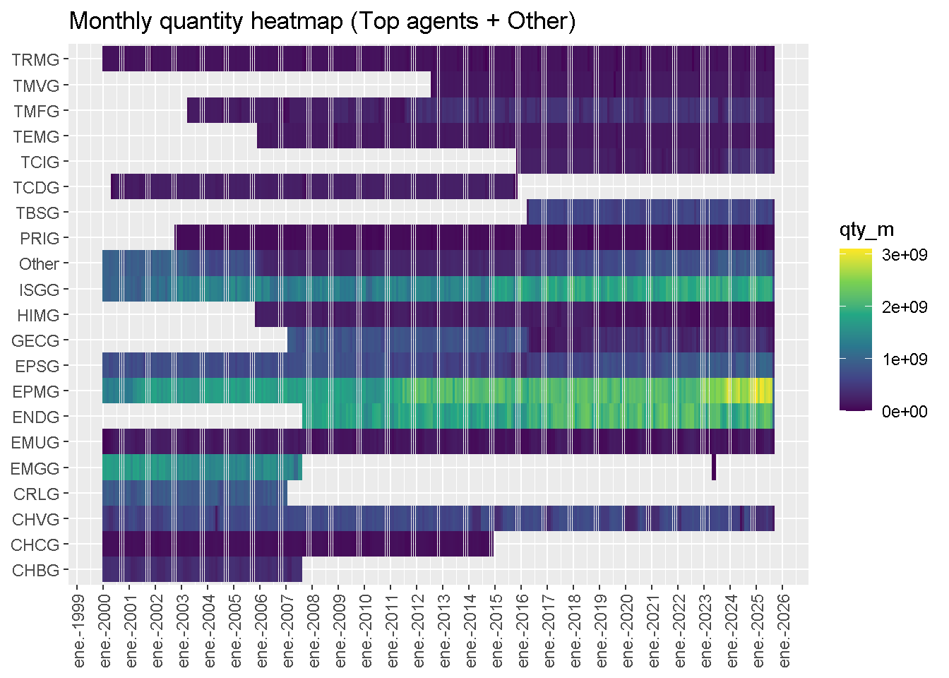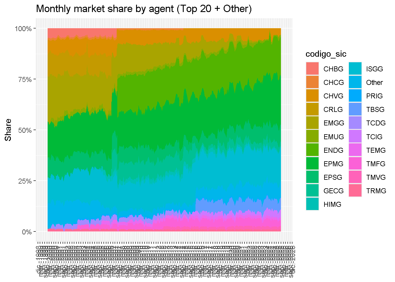 1.5 Stacked Area by Agent (Shares, codigo_sic)