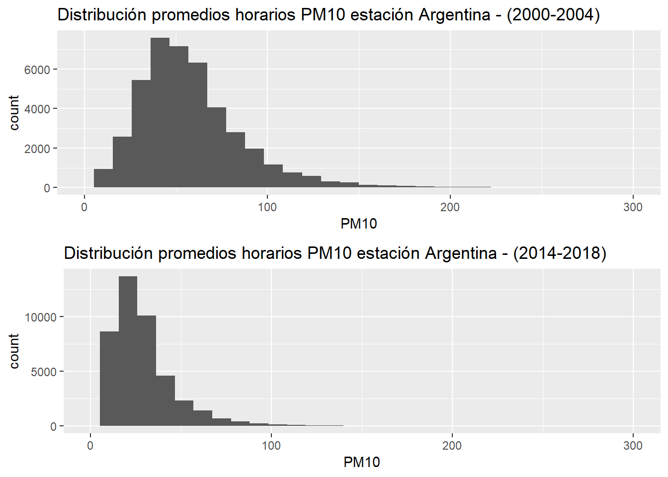 labs(title = "Distribución promedios horarios PM10 estación Argentina - (2000-2004)")