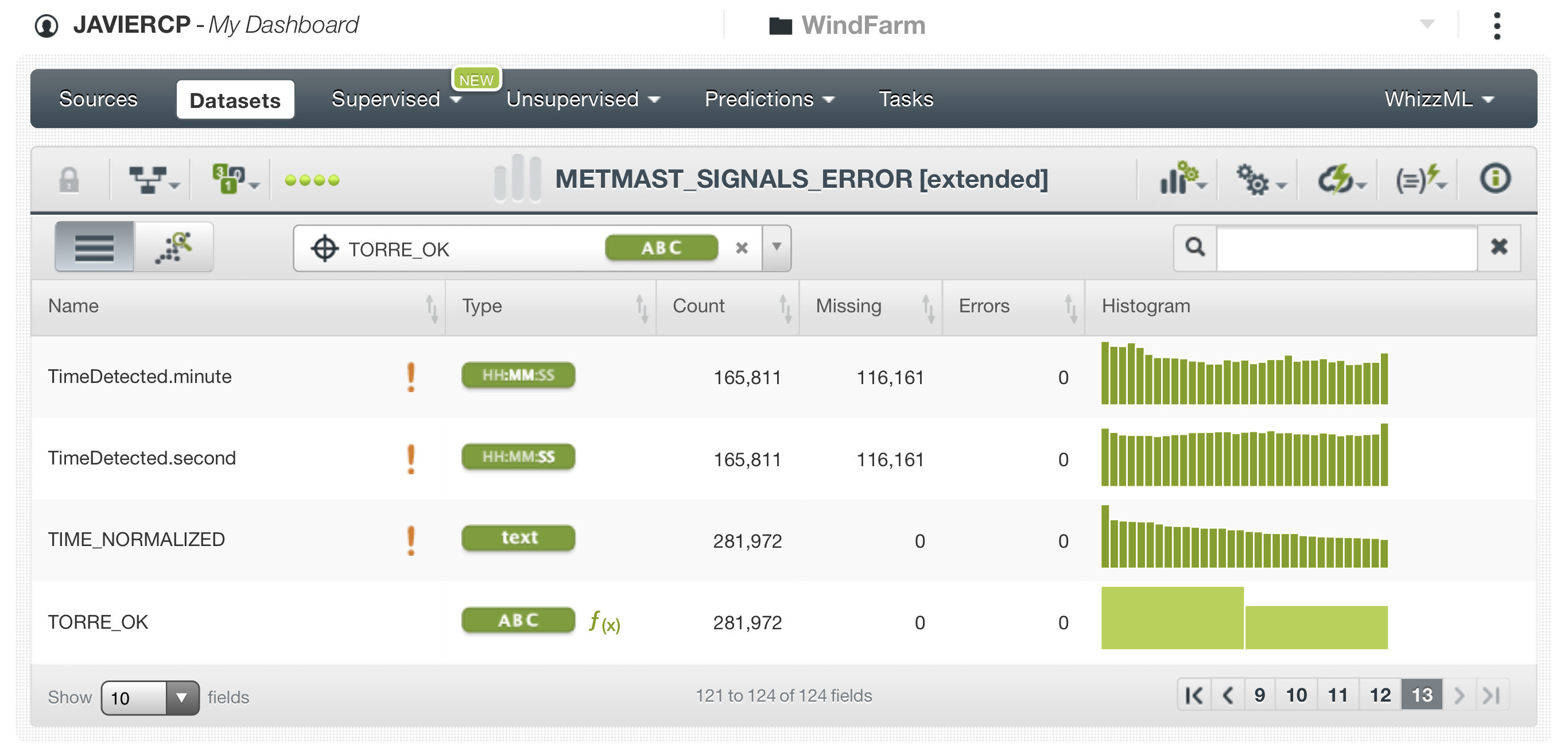 Aquí se ven los datasets que creamos a partir de las dos fuentes. Como en el reto anterior se puede ver que creamos un dataset y sobre él fuimos iterando. Lo primero que hicimos fue normalizar la fecha de los errores que se podian producir en cualquier minuto mientras que las mediciones se realizaban cada 10 minutos. Luego hicimos un join de los datasets por el identificador de la torre y la fecha normalizada con lo que ya teniamos un dataset a partir del que entrenar el modelo.