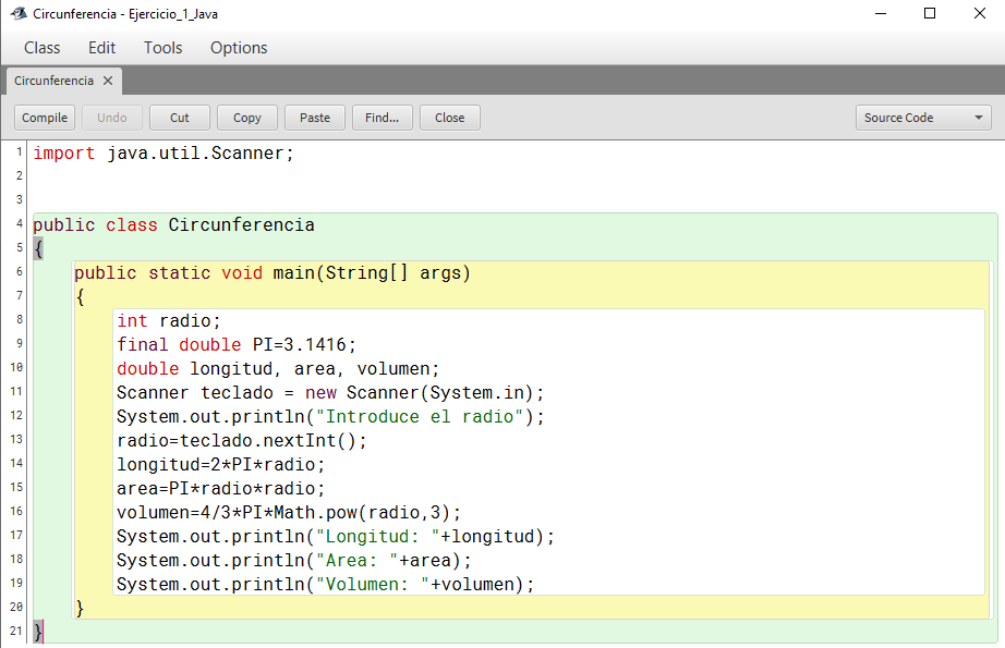 1. Construir un algoritmo que tome como dato de entrada un número que corresponde a la longitud de un radio y nos calcula y escribe la longitud de la circunferencia, el área del círculo y el volumen de la esfera.