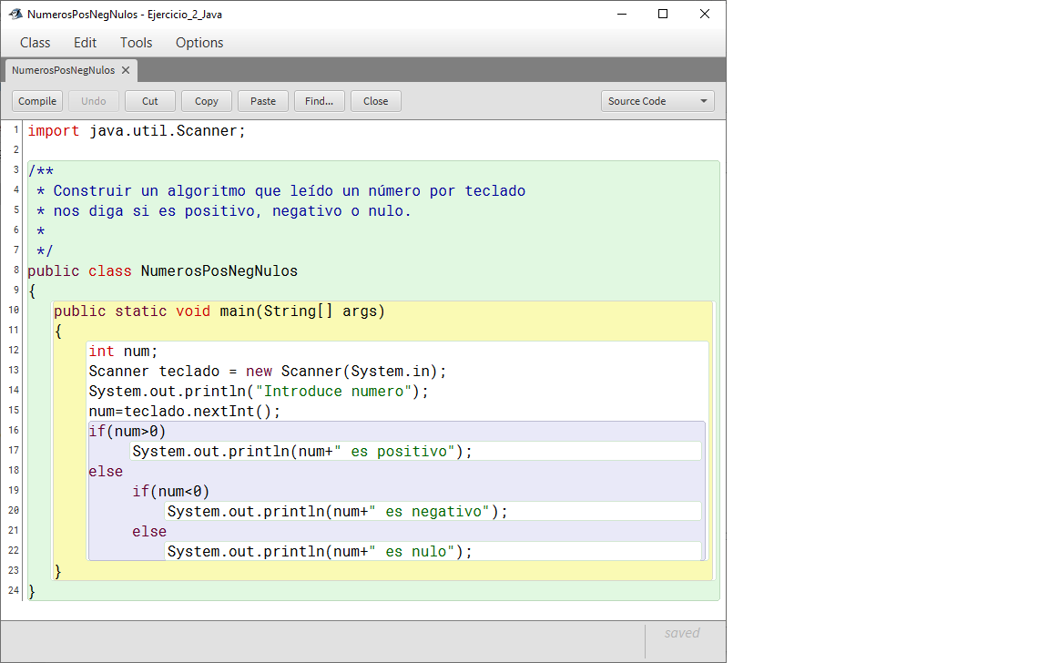 2. Construir un algoritmo que leído un número por teclado nos diga si es positivo, negativo o nulo.