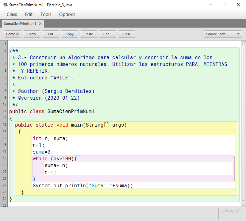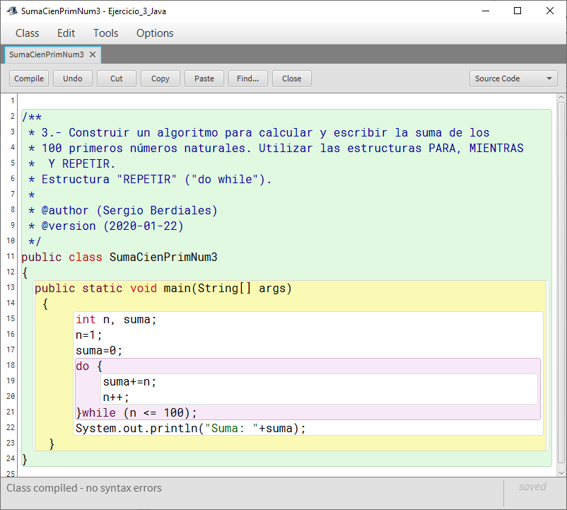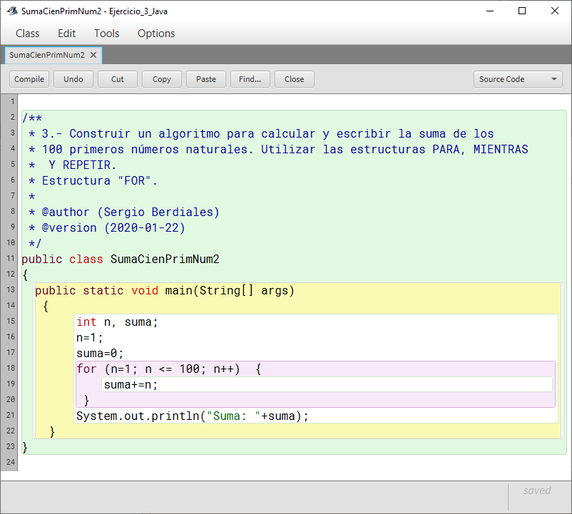 * 3.- Construir un algoritmo para calcular y escribir la suma de los