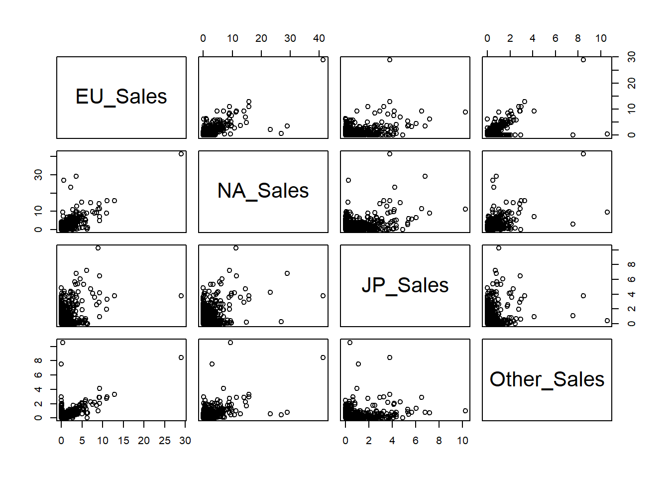 pairs(datos[, c("EU_Sales", "NA_Sales", "JP_Sales", "Other_Sales")])