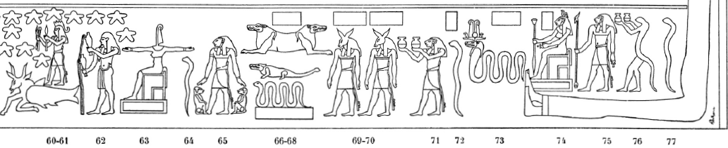 24-32: Various serpents and a crocodile-headed, four-winged bird Detailed photograph. Credit: Ahmed Amin