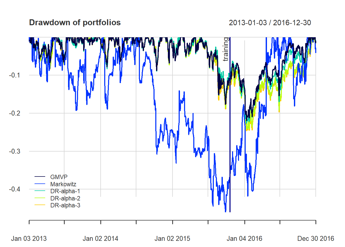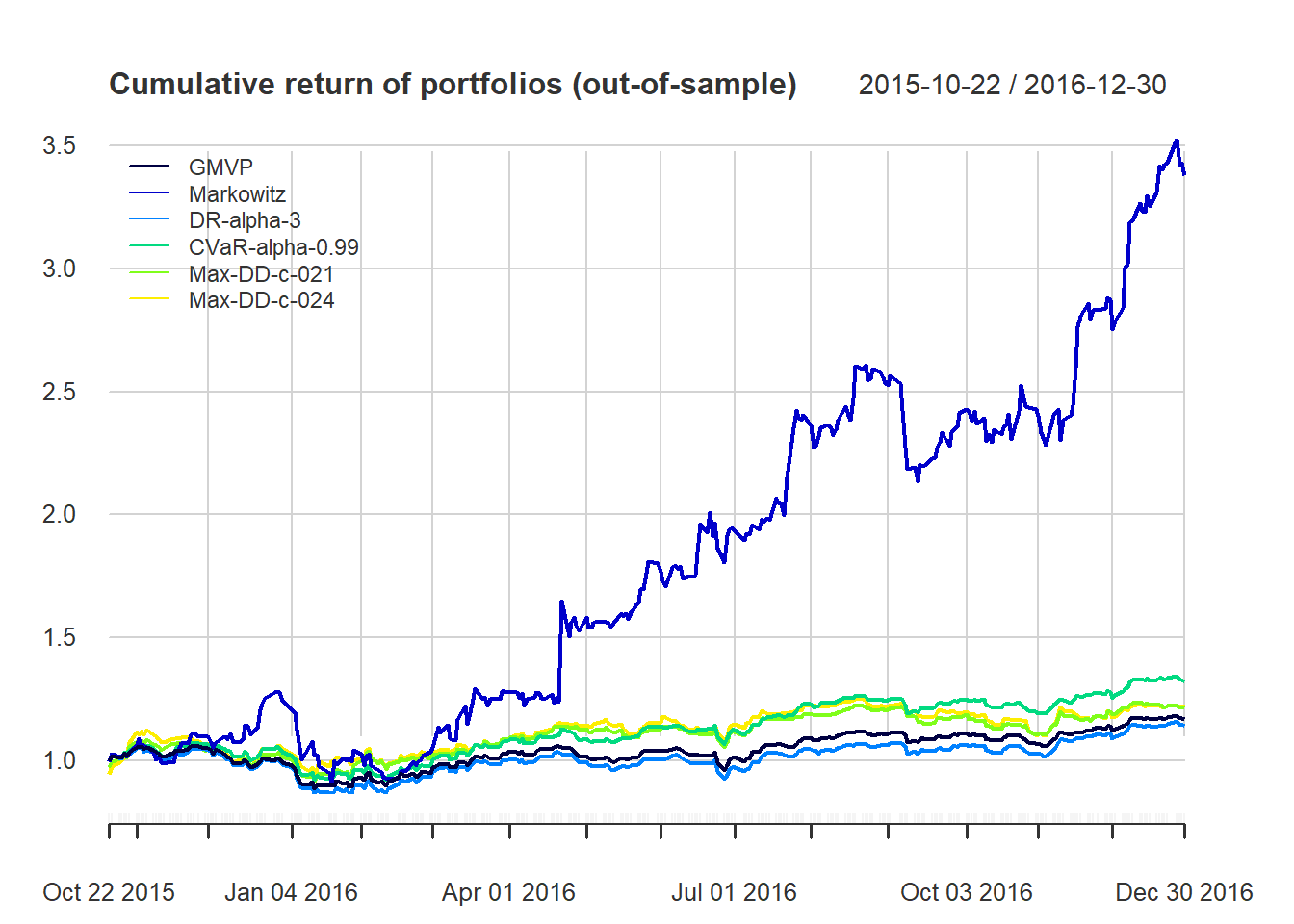 #> GMVP Markowitz DR-alpha-1 DR-alpha-2