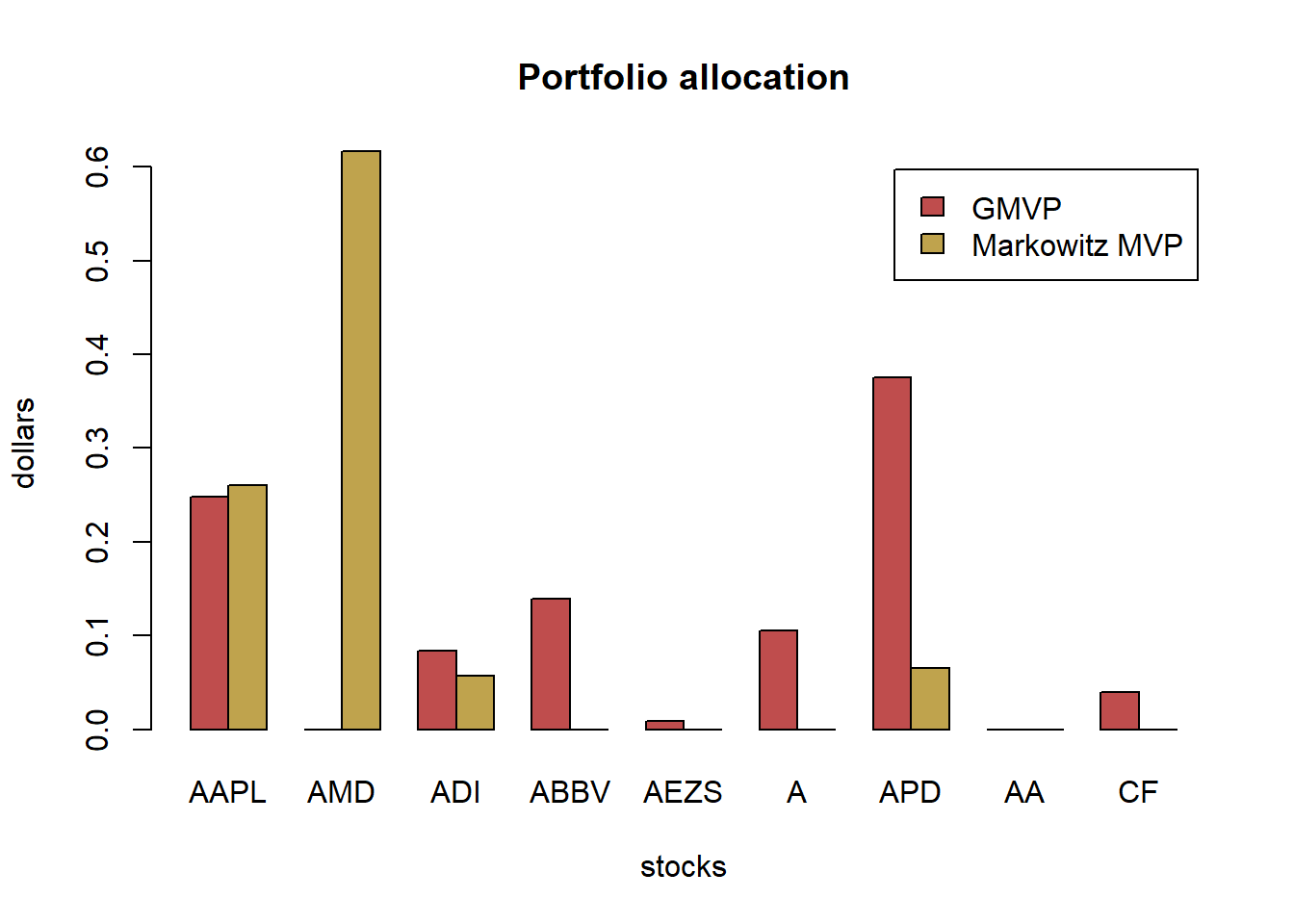 colnames(w_all) <- c("GMVP", "Markowitz MVP")