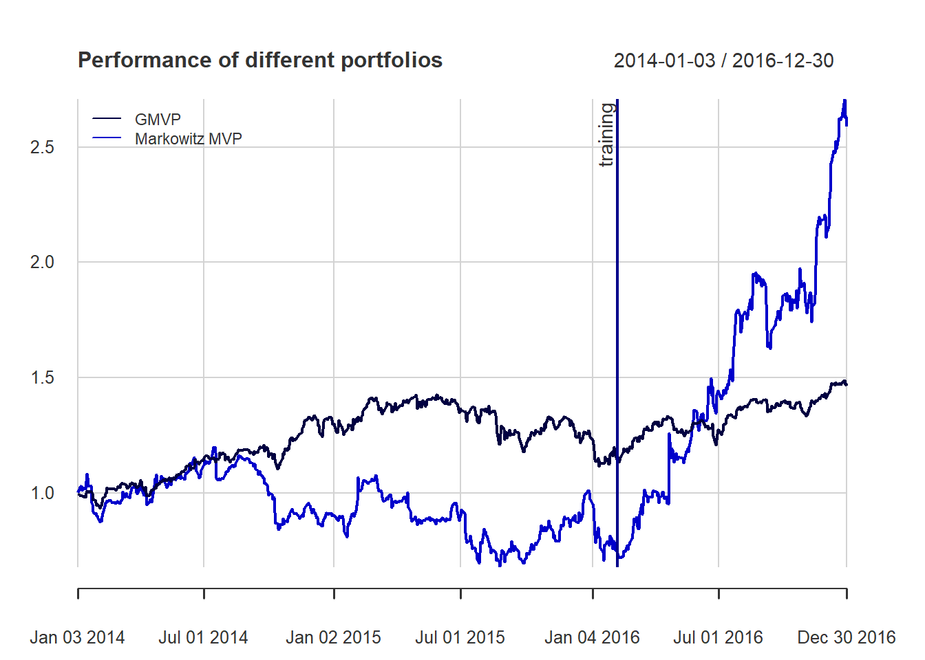 ly_abline(h = mean_variance_clairvoyant, legend = "clairvoyant")figure(width = 800, title = "Performance Markowitz",