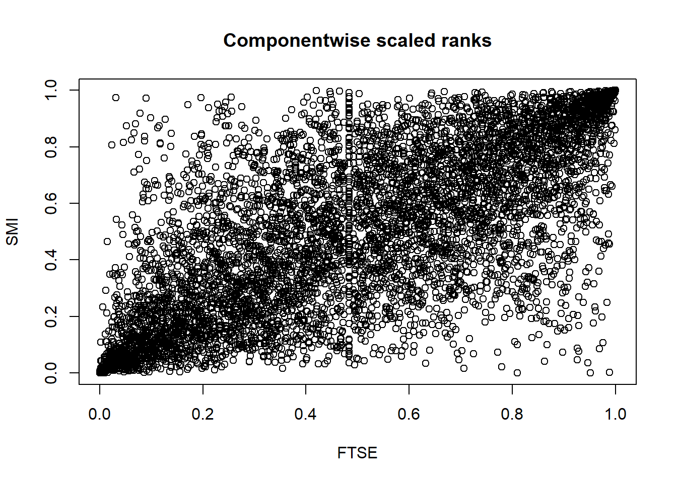 plot(X., main = "Componentwise scaled ranks") # now better visible (bottom-left, top-right corners)