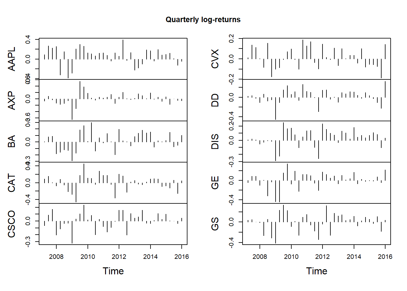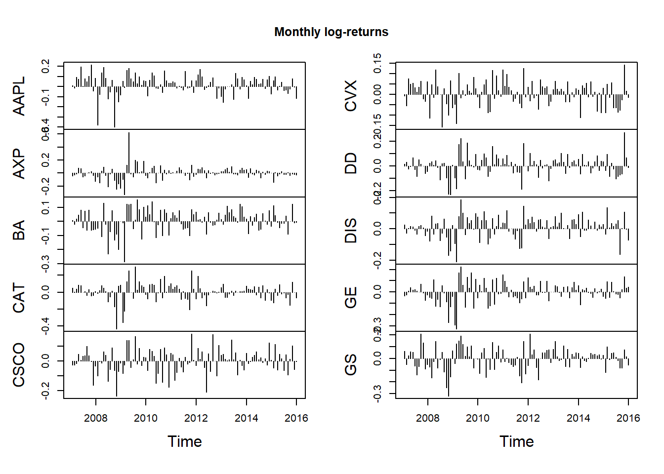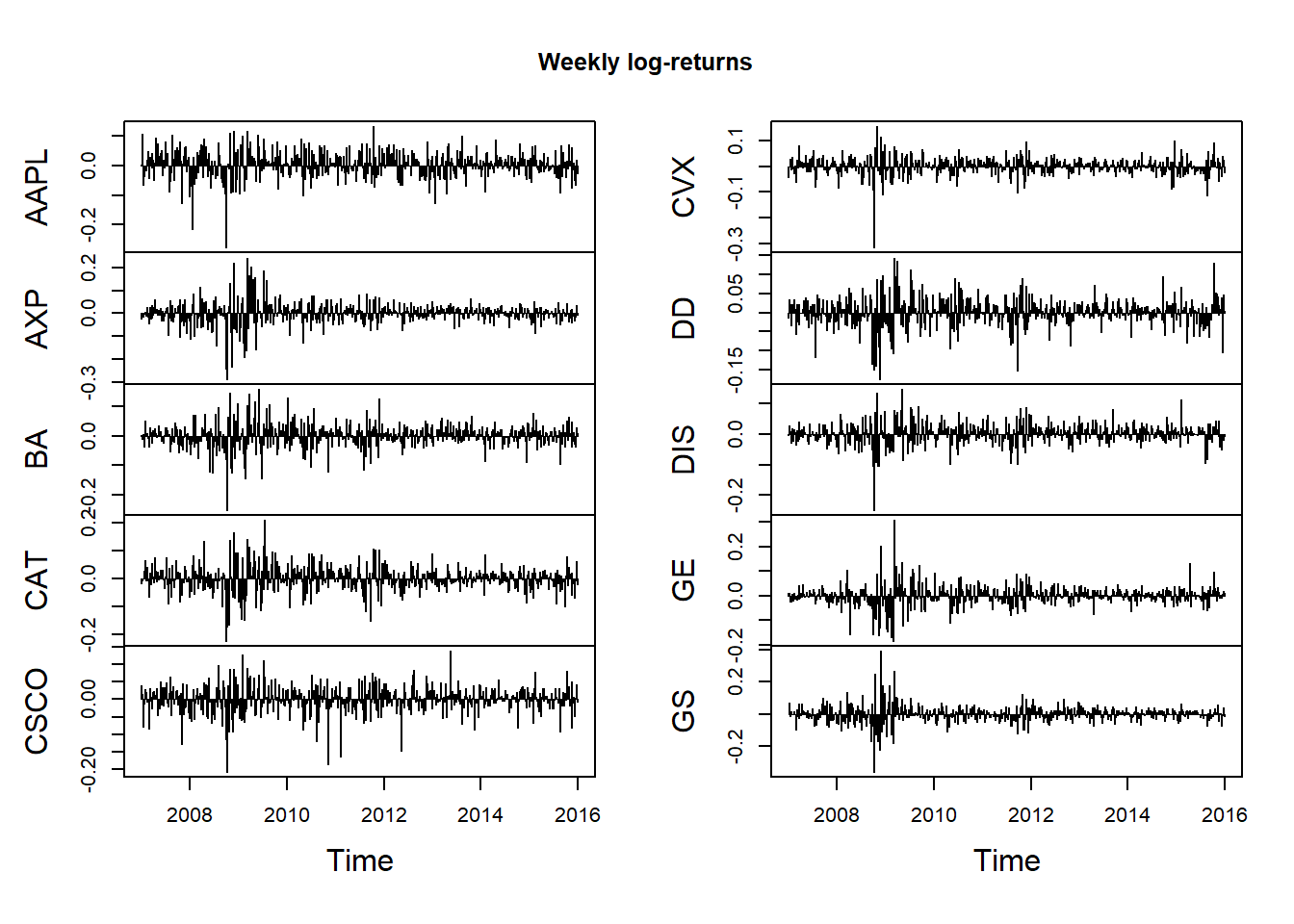 X = returns(DJdata) # or diff(log(DJdata))[-1,]