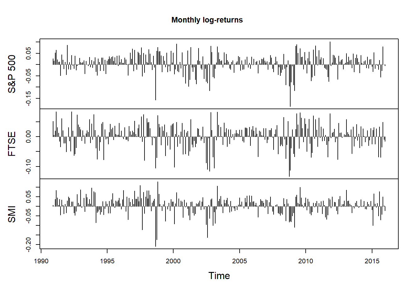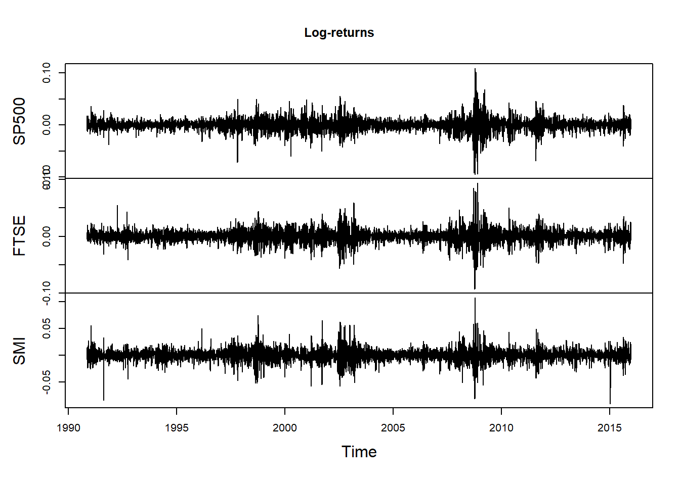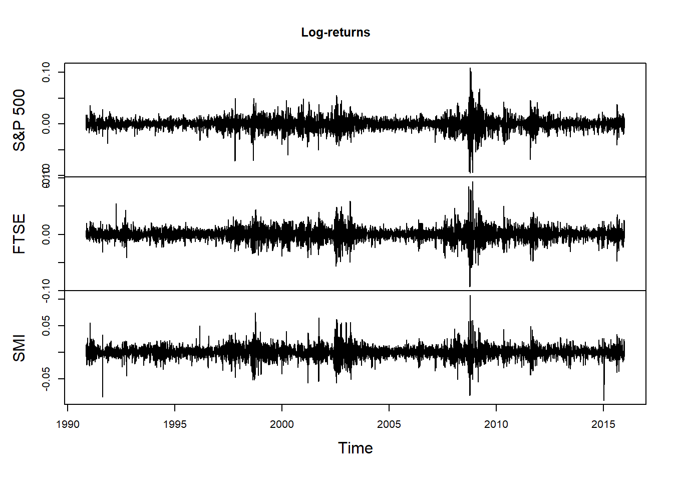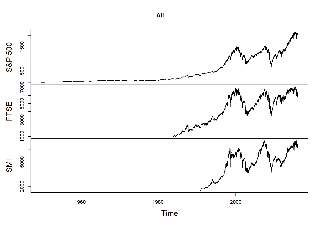 X = merge(SP500.X, FTSE.X, SMI.X, all = FALSE)