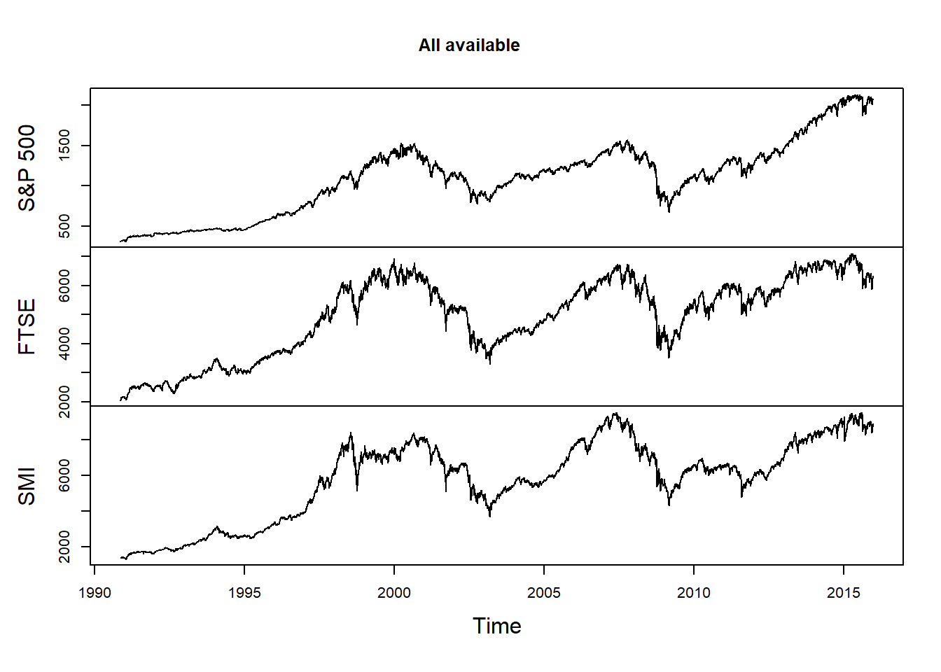 all.avail = merge(SP500, FTSE, SMI, all = FALSE)