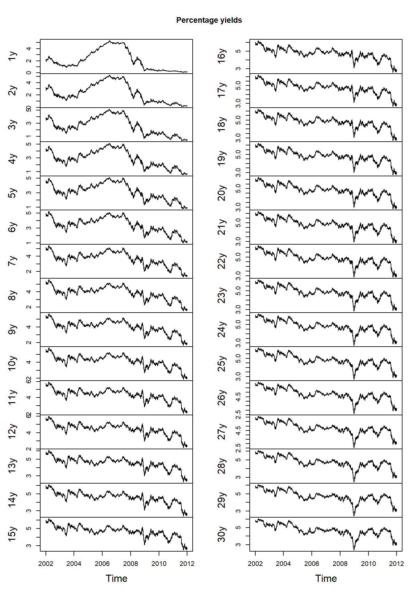 DJdata = DJ_const['2006-12-29/2015-12-31', 1:10]Use plot for zoo objects to get multiple plots: