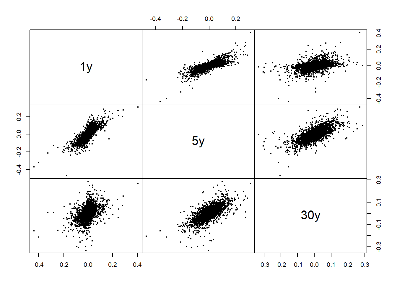 pairs(as.zoo(X), gap = 0, cex = 0.4)