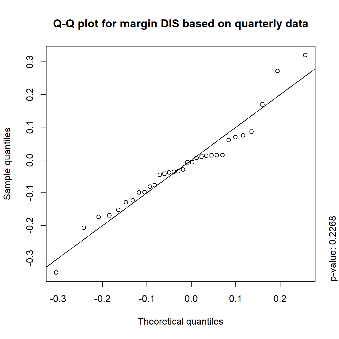 quarterly = apply.quarterly(X, FUN = colSums)) # quarterly risk-factor changes3.4.3.1 Are the risk-factor changes normally distributed?