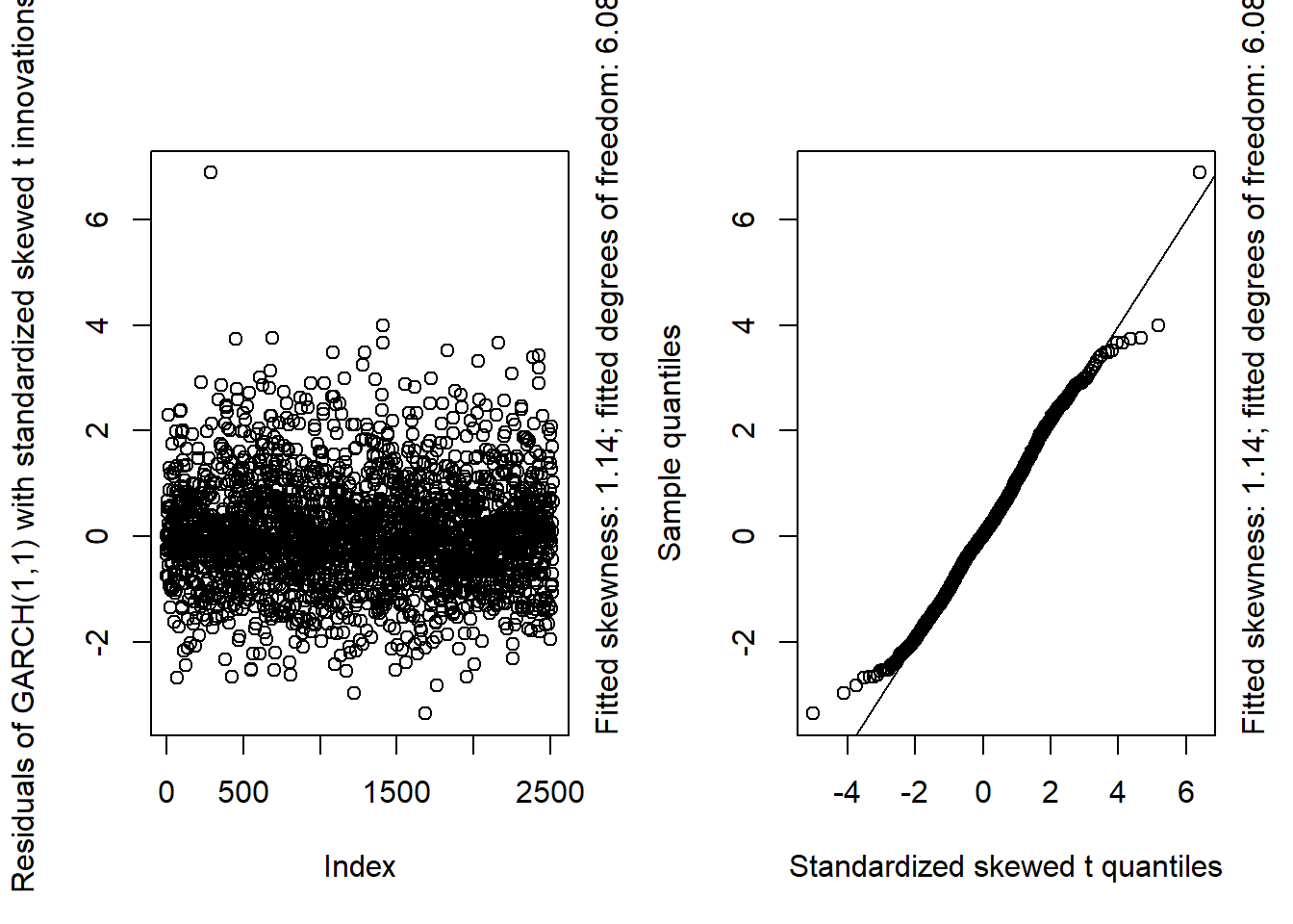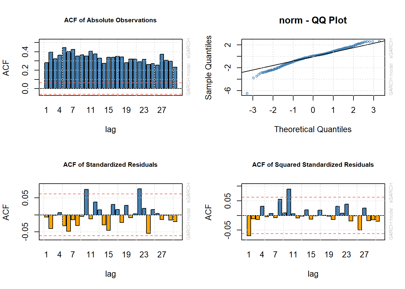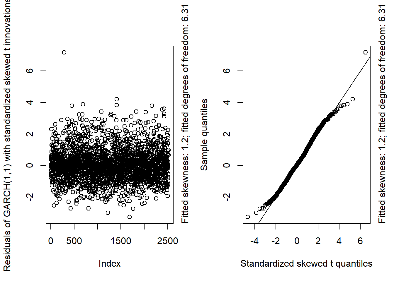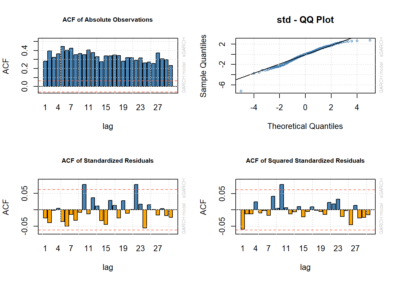 fit = GARCH11_check(X.d, armaOrder = c(0, 0), distribution.model = "sstd") # get fitted model