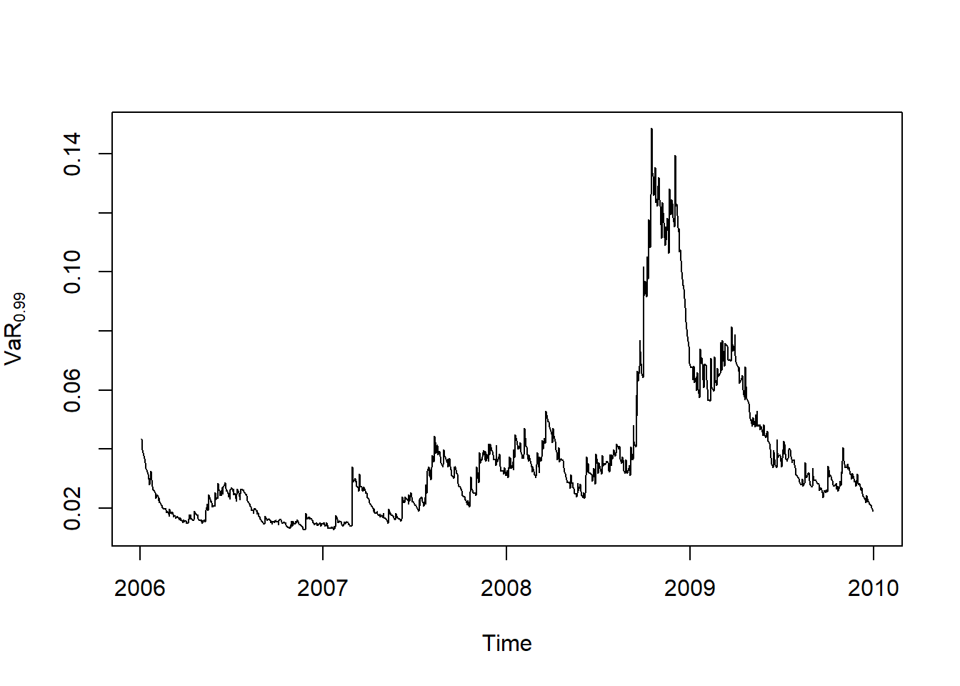 lines(VaR., col = "darkred") # estimated VaR_alpha